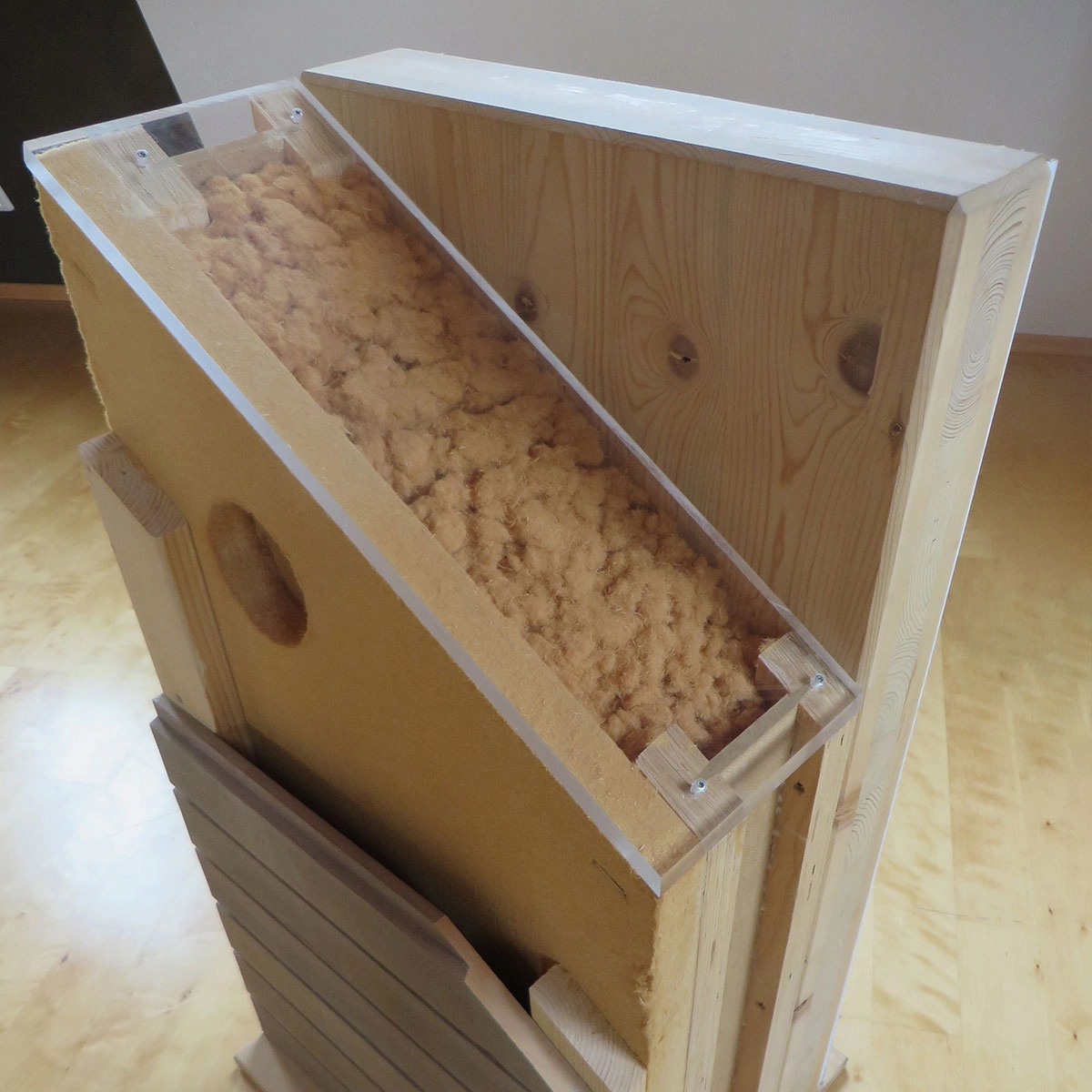 Um eine diffusionsoffene Gesamtkonstruktion zu erreichen, wird ein Holzweichfaser–Wärmedämmverbundsystem verwendet. Er ermöglicht den Austausch von Luftfeuchtigkeit zwischen Raumluft und Außenluft: